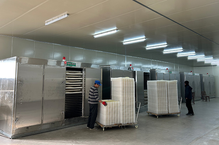 新鮮銀耳含水量高達(dá)75%左右,易受霉菌污染變質(zhì),故而需要及時(shí)進(jìn)行烘干加工處理,所以我們?cè)谑袌隹吹降亩酁楦摄y耳。鮮銀耳在烘干過程中,需要及時(shí)排濕,而且溫度又不宜過高,這樣才能夠讓銀耳烘干后顏色達(dá)到要求。以前,銀耳烘干有晾曬法和烘箱烘干法,但這兩種都有弊端,曬干的方法簡單實(shí)惠,但依賴于天氣變化,一般要晾曬2-3天才能曬干,耗時(shí)長,曬干的成品控制不穩(wěn)定,不適合市場大批量烘干。而烘箱烘干法,需要人工不斷的翻轉(zhuǎn)物料,導(dǎo)致熱量損耗大,銀耳外形容易受損,溫度控制不穩(wěn)定,成品差異大。用賽百諾空氣能熱泵銀耳烘干機(jī)進(jìn)行銀耳烘干,烘干均勻,保證每一朵銀耳質(zhì)量保持一致,智能控制溫濕度,成品外觀白中微黃、透明、形狀好,品質(zhì)好,價(jià)值高。