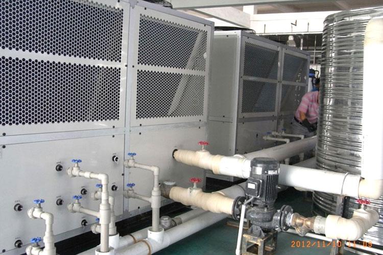 以山東某釀酒廠為例,采用空氣源熱泵高溫熱水系統,由正旭4臺25P復疊高溫熱泵機組構成,供宏濟堂酒窖釀酒使用。項目穩定運行三年,節約能耗節46%以上。