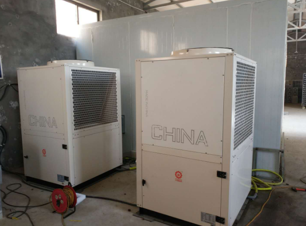 下一步就是安裝主機,安裝前要先進行主機和墻板的定位,確保出風口與回風口不被遮擋,且主機與庫板之間預留縫均勻,主機一般放置在板房窄的一側,通常要裝一個坐墊、底下約10公分的鋼槽,并安上橡皮墊減震。安裝完主機還要安裝風道和排水管,風道要根據出風口位置和循環風類型而定,大小比回風口大一點即可,管道要稍微加彎角并做好保溫措施,用鋁皮進行包裹。排水管一般采用pvc20的管道進行連接。