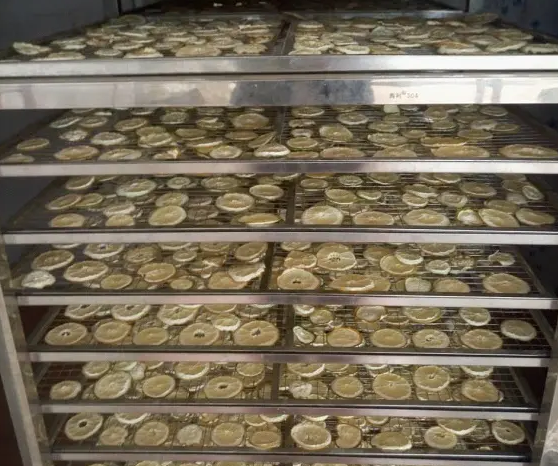 檸檬極易氧化,所以放置一段時間的檸檬片就會氧化變黑。隨著消費者對檸檬茶片需求的增加,干制檸檬片的需求日益增長。傳統的檸檬片干燥主要依靠太陽晾曬或者燃煤、燃油來烘干,受天氣影響大,陰雨天氣無法干燥,并且會遭受灰塵污染或者是蠅蟲叮咬,食品安全難以保證。燃煤或者燃油干燥溫度不易控制,影響環境,也不符合食品生產要求,一些簡易的生產車間還存在安全隱患。并且這種干燥方法溫度較高,檸檬片本身含糖,焦化后的檸檬片容易發黑,影響檸檬的賣相和品質。