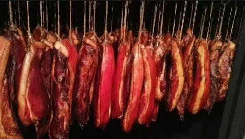 肉禽類物料大多脫水量大,烘干數(shù)量多,且容易腐壞變質,烘干要點是抑制細菌和平衡脫水,典型物料有臘肉、臘腸、板鴨和臘雞等。以臘肉為例,前期需要快速升溫,保證物料不會變質,但是溫度又不宜過高,否則油脂快速溢出,在高溫作用下容易變成黑色,影響成品外觀和品質。