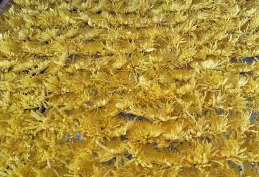 菊花烘干項目為例,新鮮菊花含水量高,花瓣部分含水量相對較少,組織較嫩,容易干燥,花頭部分含水量大,可達80%以上,所以菊花是一種含水量不均勻的物料。干菊花大多用于泡茶用,味濃香甜,去膩消食、醒腦益神,因此市場上對于菊花的色香形味要求很高。為此正旭團隊經(jīng)過實地考察之后,最終決定投入15臺
