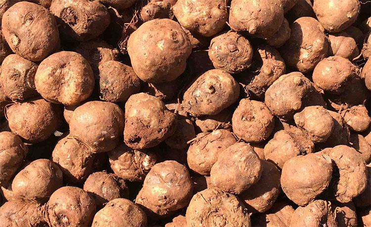 新鮮魔芋的含水量較高,一般在80%-85%左右,體積大,性質(zhì)脆嫩,運(yùn)輸時(shí)容易因?yàn)榘釀?dòng)、摩擦、碰撞等造成損傷,所以很多魔芋種植戶選擇將魔芋加工成干片、芋角等再進(jìn)行運(yùn)輸或者深加工,以達(dá)到高經(jīng)濟(jì)收益。